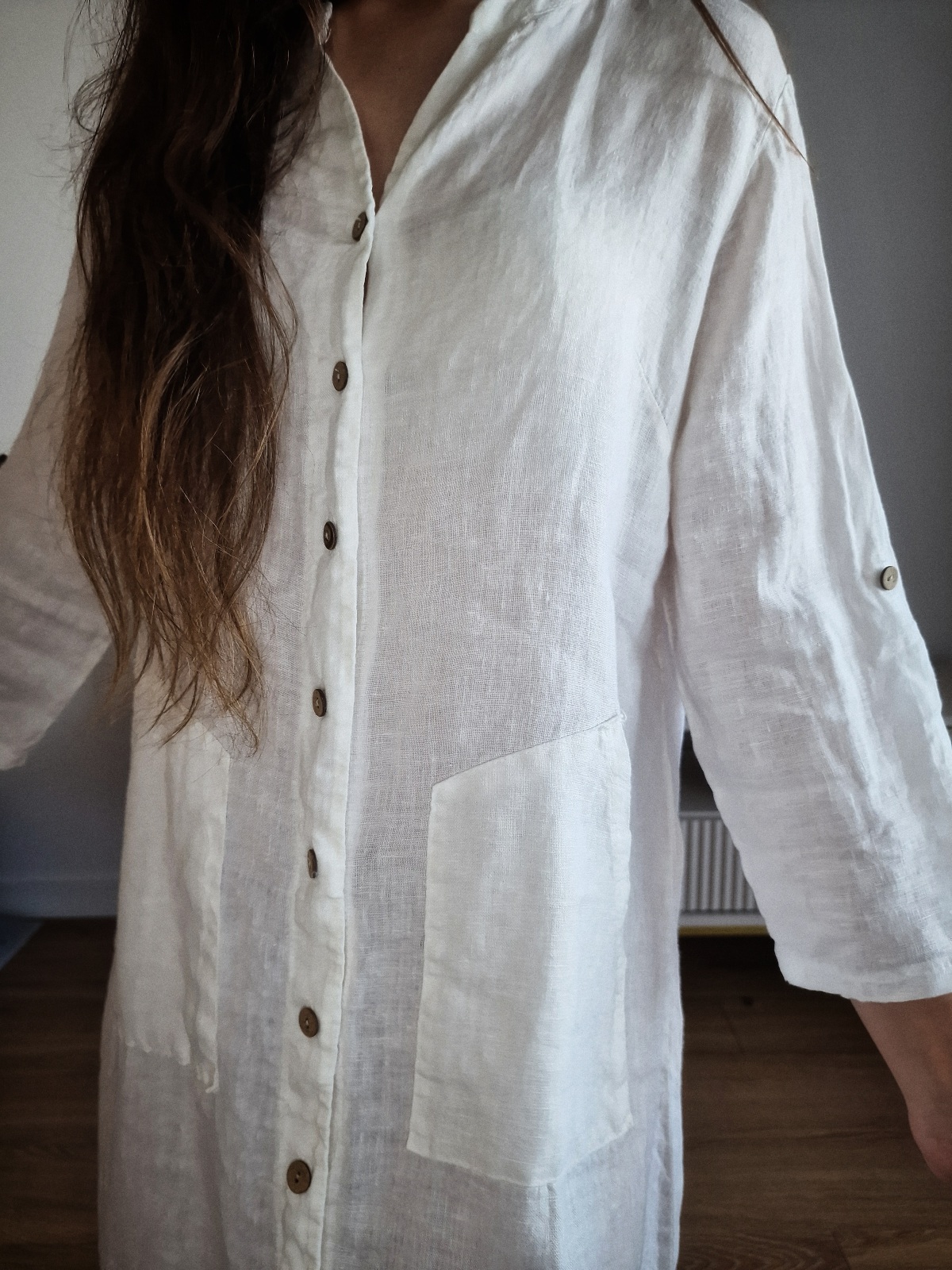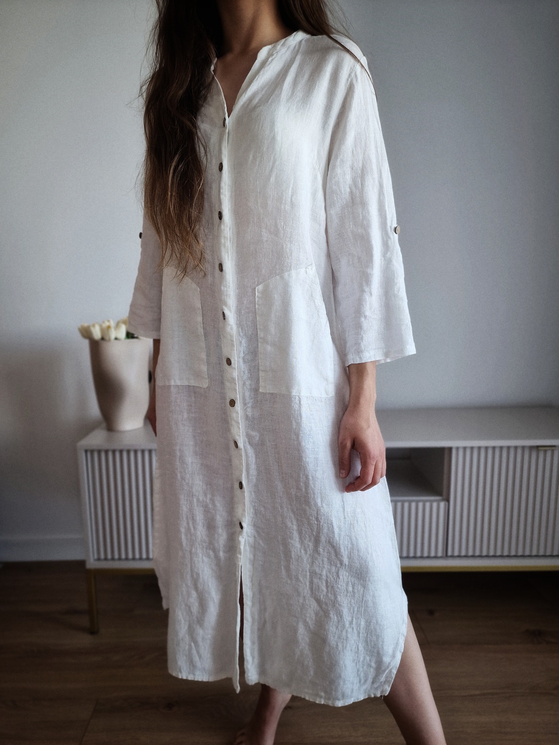 Biała sukienka lniana, S/MDostępność: 1 w magazynie
