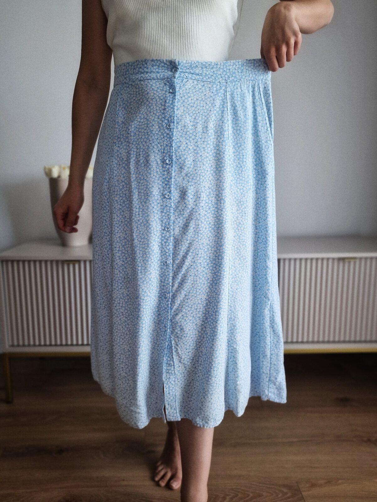 Błękitna spódnica w kwiatki, wiskoza, M, PREMIUMDostępność: 1 w magazynie