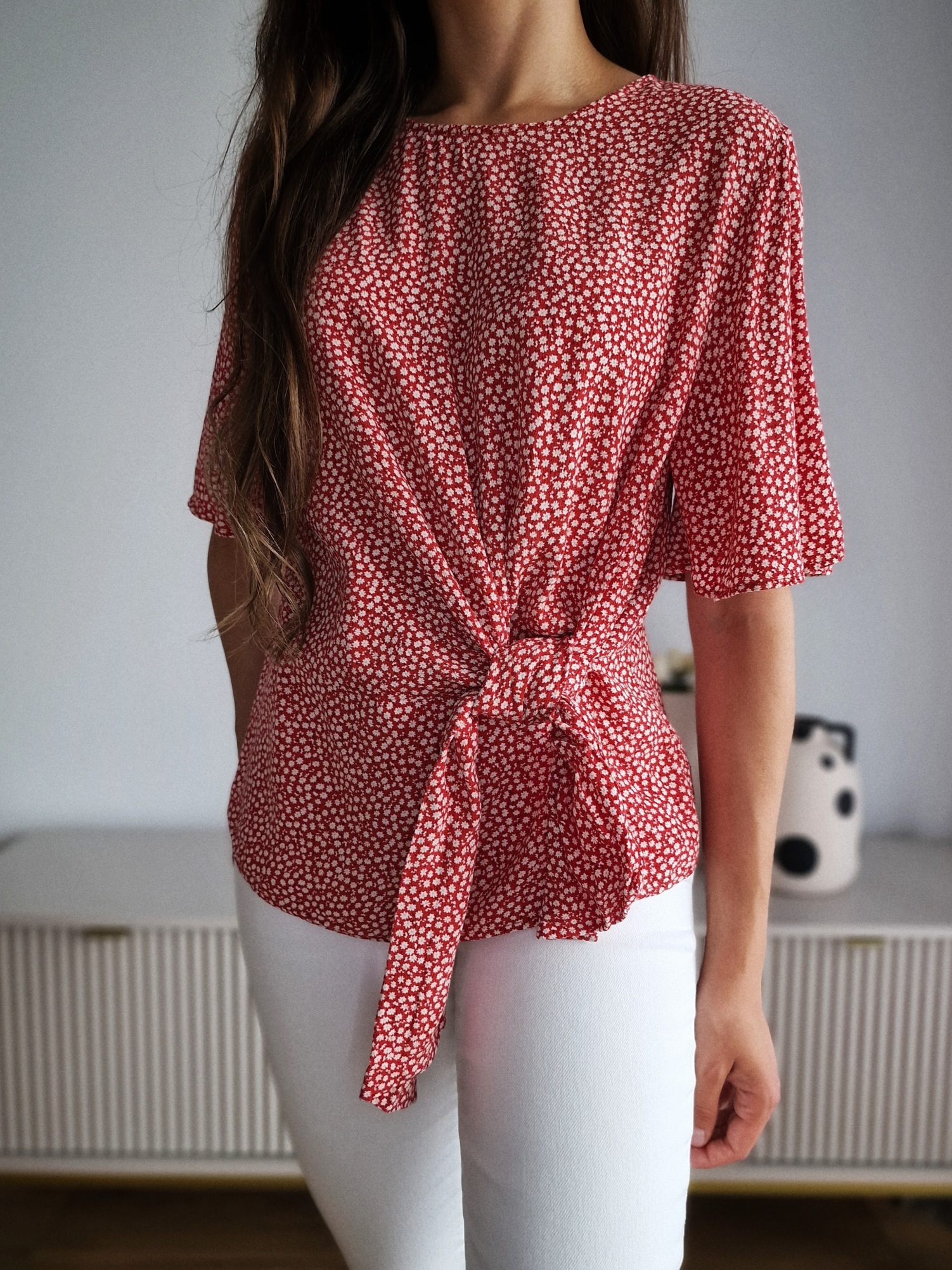 Czerwona bluzka w kwiatki, wiskoza, M