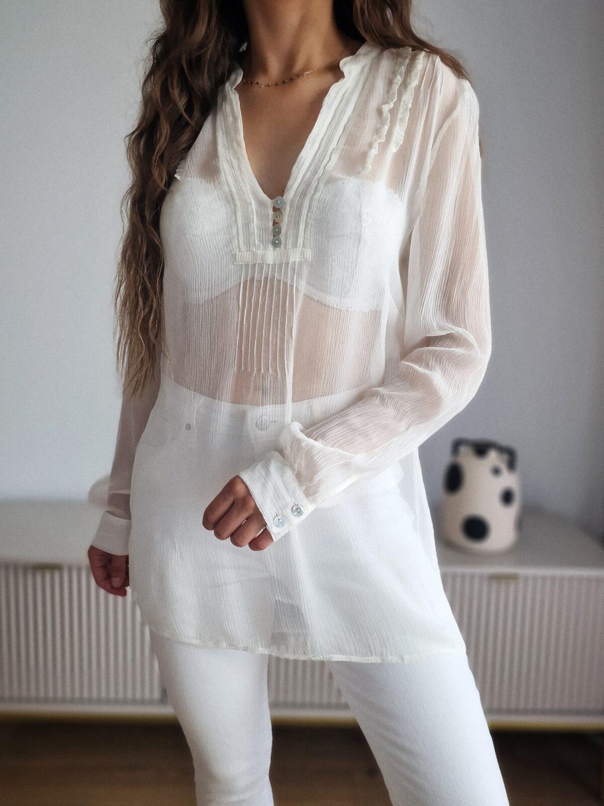 Kremowa bluzka mgiełka, jedwab, S/M, PREMIUMDostępność: 1 w magazynie