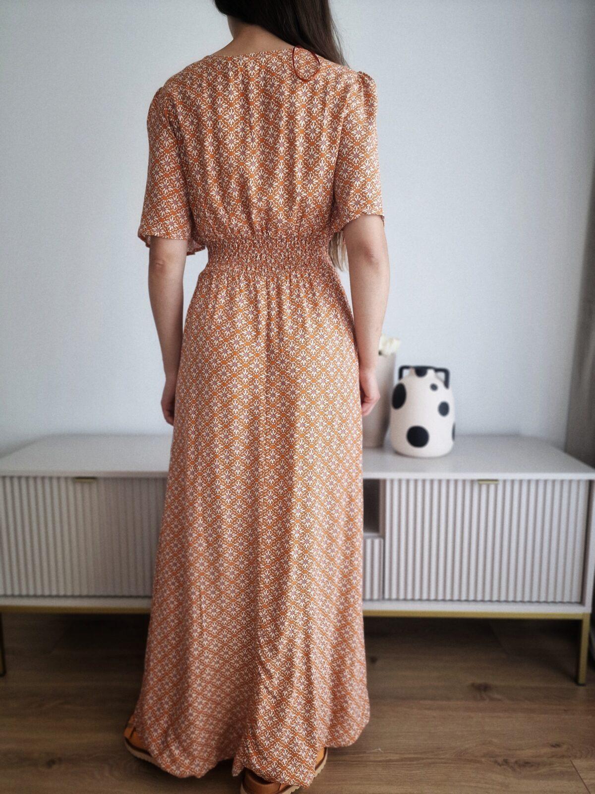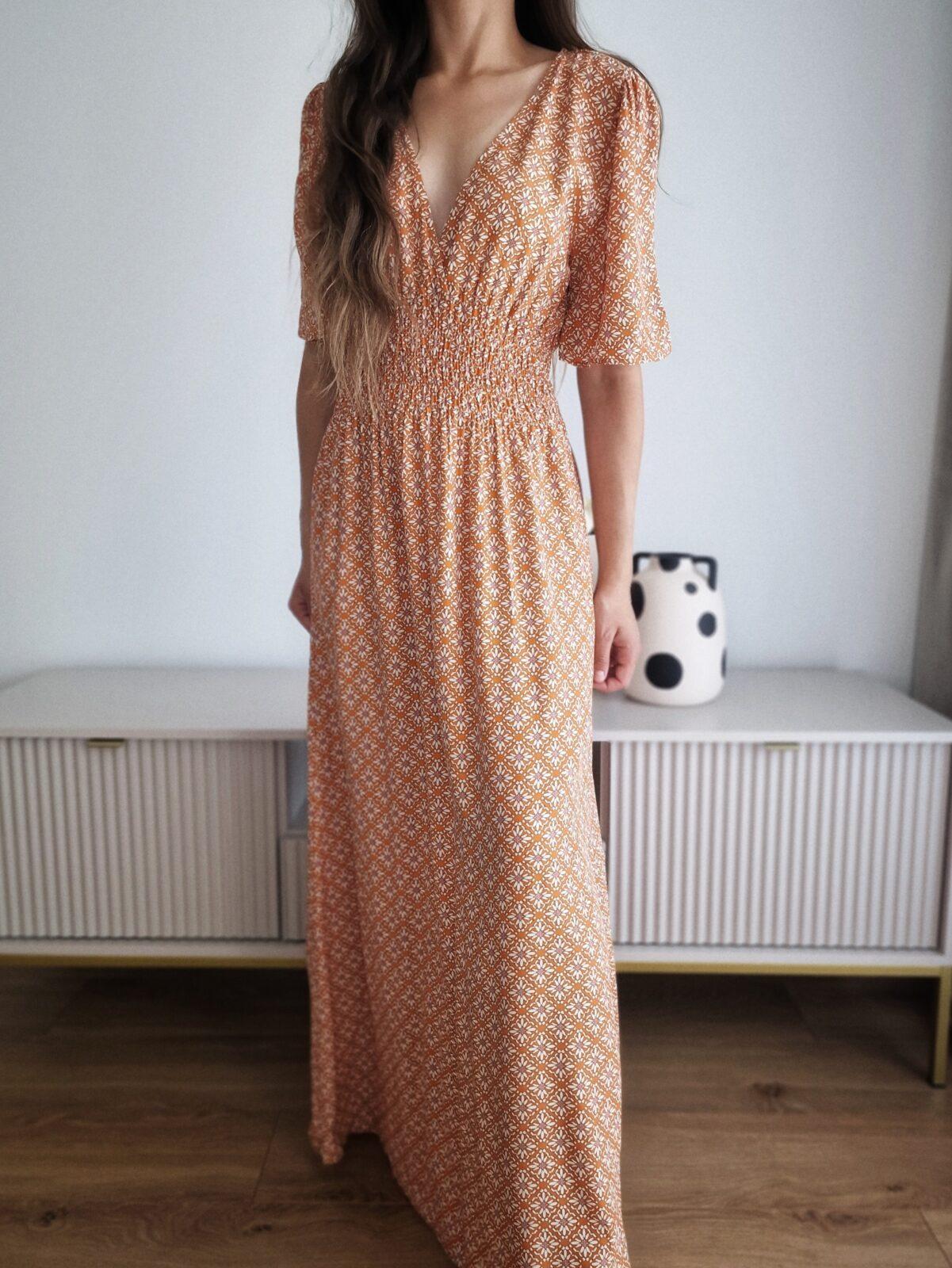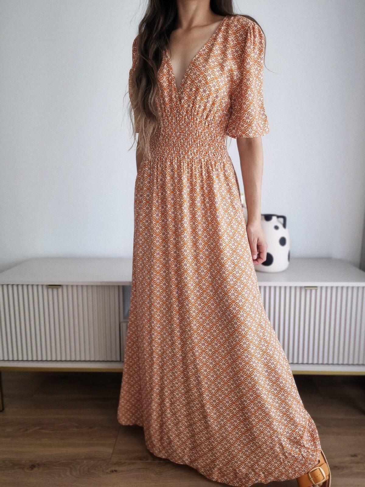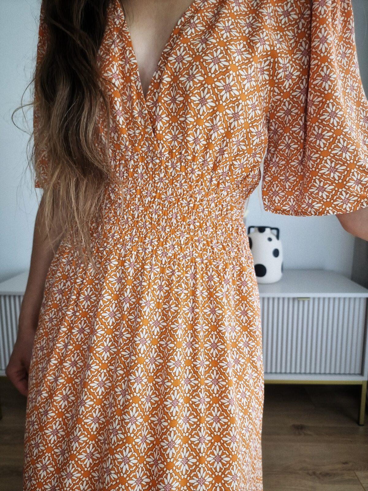 Pomarańczowa, wzorzysta sukienka, wiskoza/rayon, XS, nowa, PREMIUM