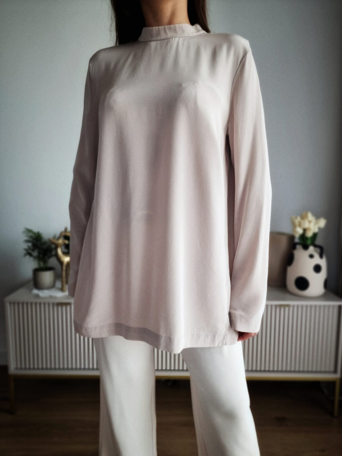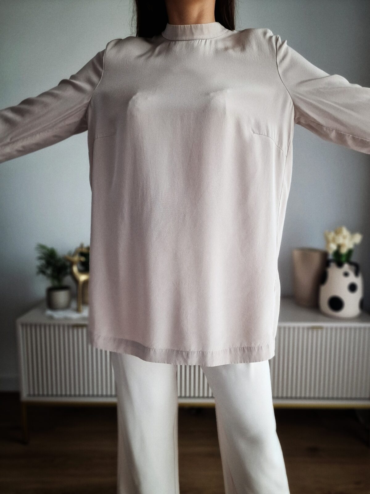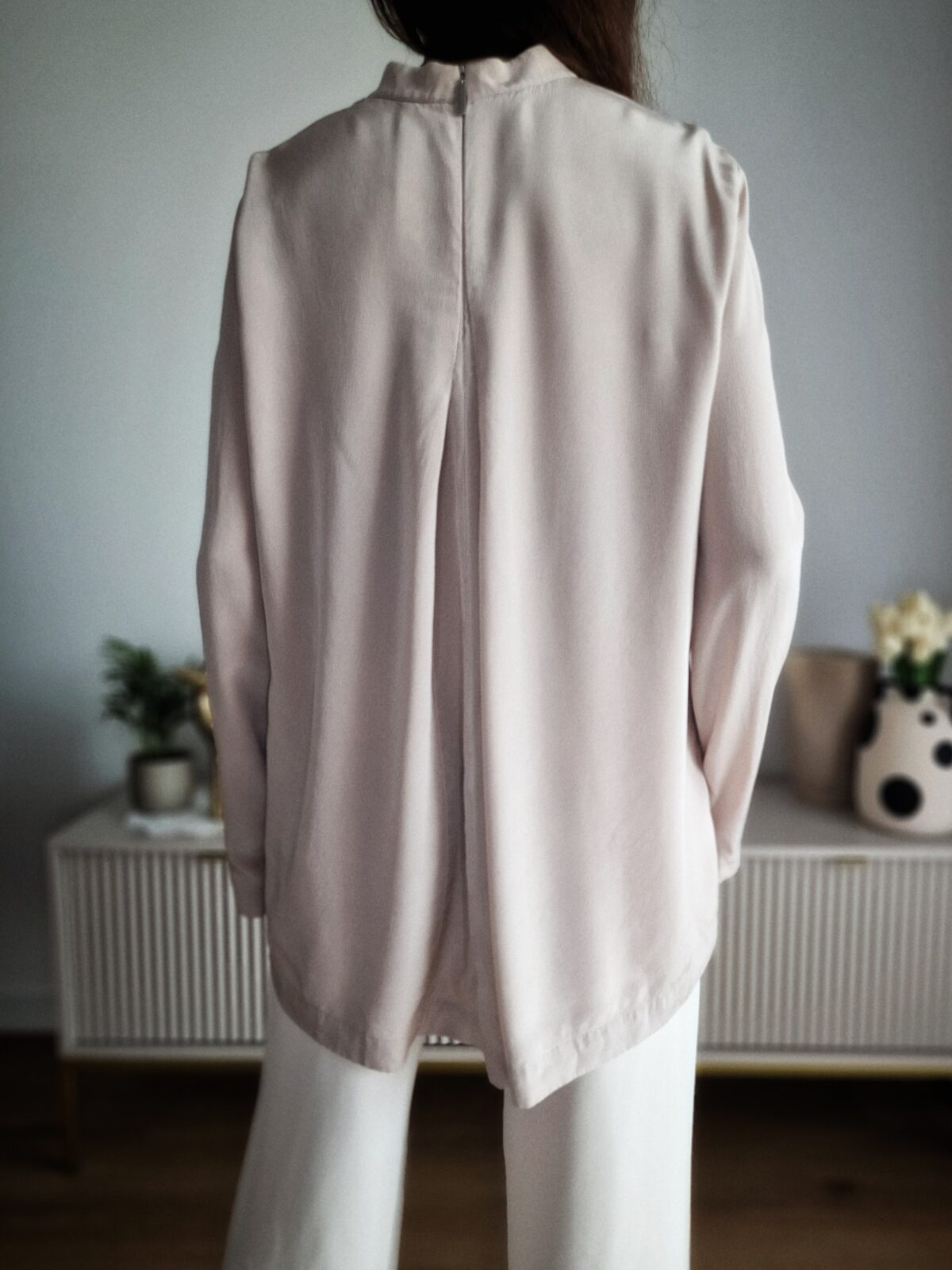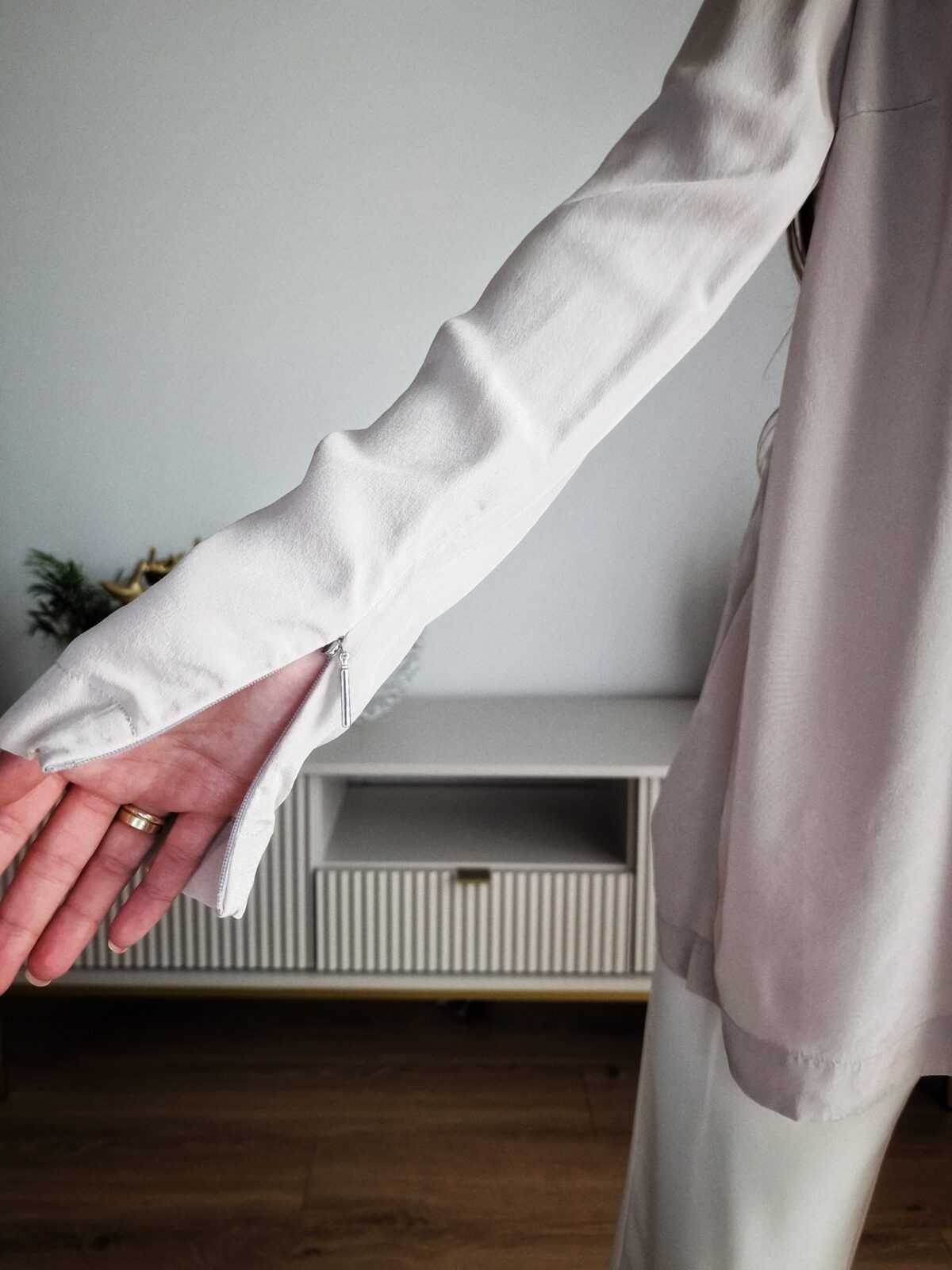 Na plecach delikatne rozciągnięcia w dwóch miejscach, typowe dla jedwabiu. Widoczne pod światło