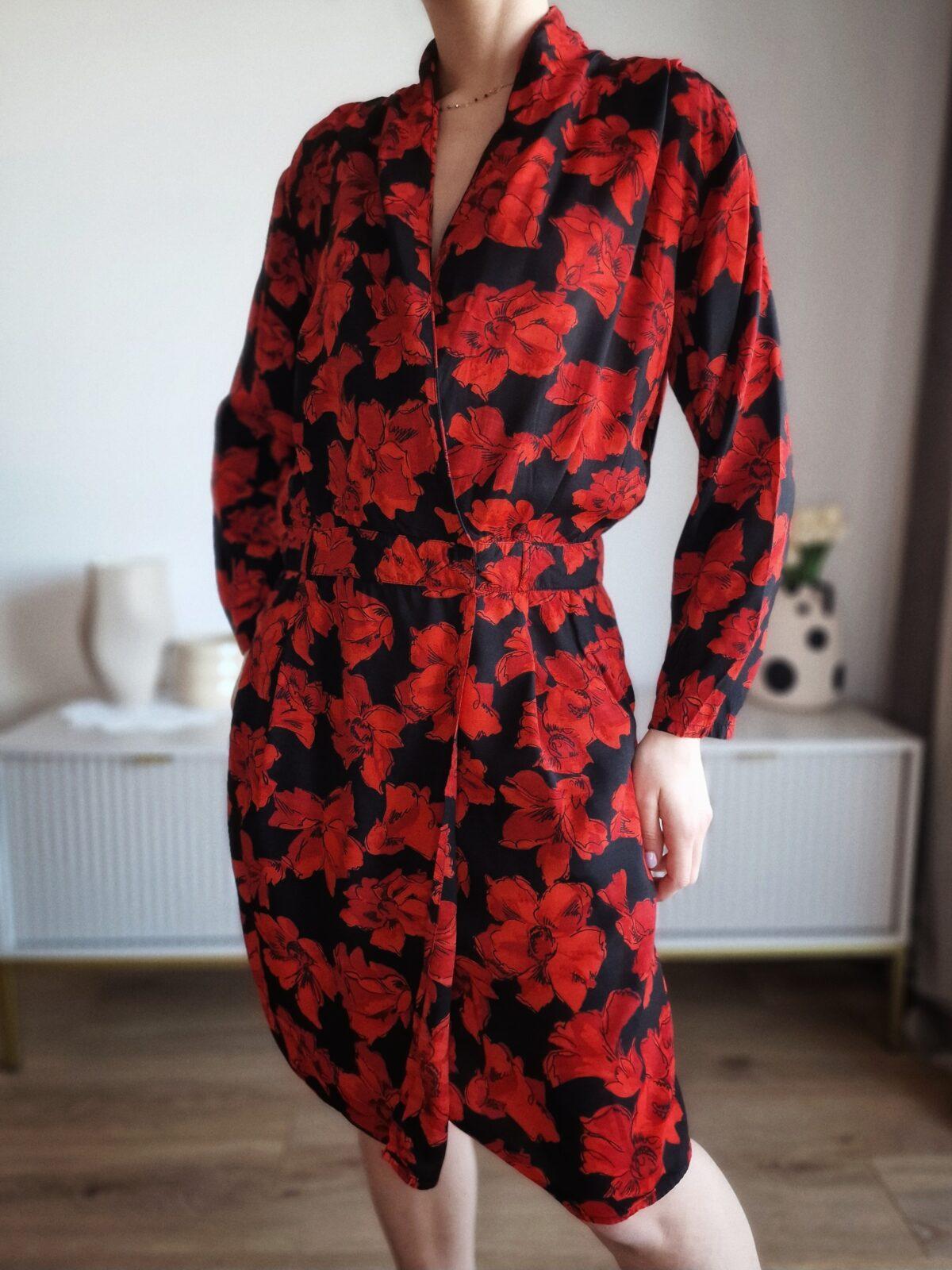 Sukienka w czerwone kwiaty Ganni, wiskoza, L, PREMIUMDostępność: 1 w magazynie