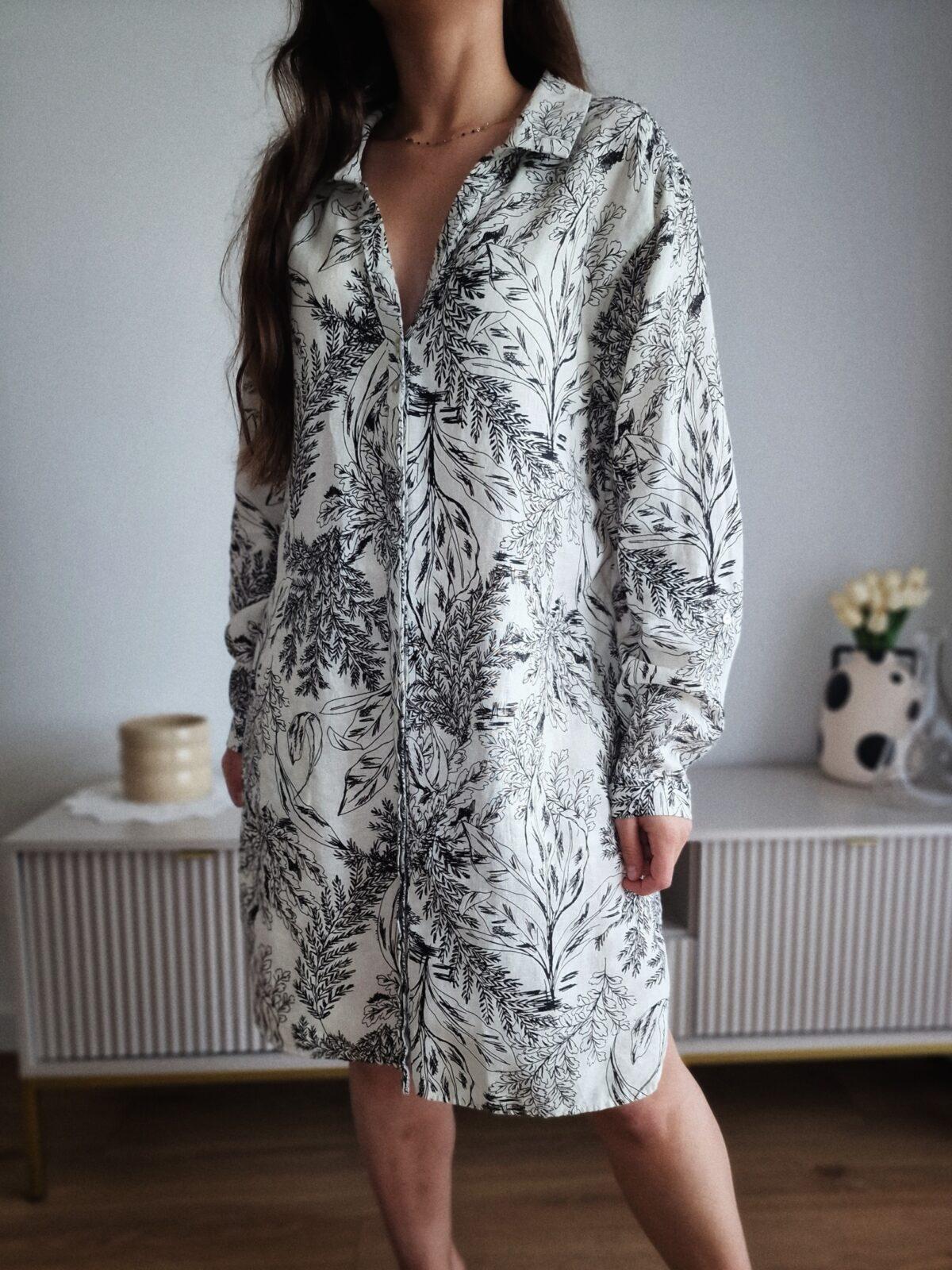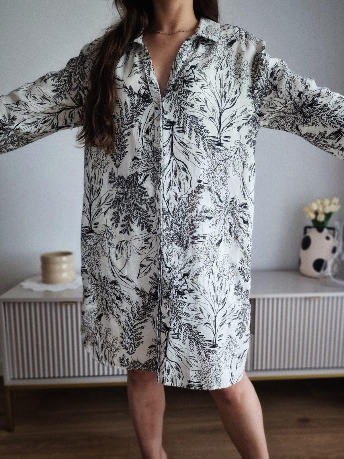 Wzorzysta, wakacyjna sukienka, len, LDostępność: 1 w magazynie